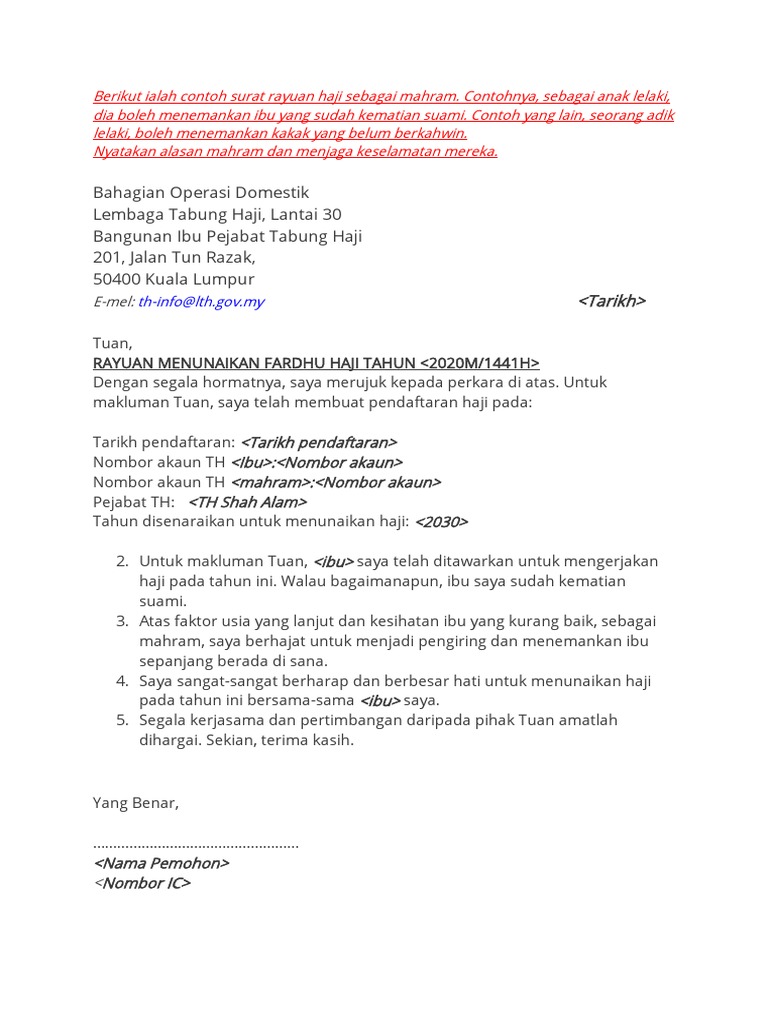 Contoh surat untuk memohon rayuan bagi mengerjakan haji. Berikut dikongsikan beberapa contoh surat rayuan haji untuk panduan permohonan rayuan haji buat rujukan mereka yang memerlukannya. Rafizi ramli ahli parlimen pandan dan naib presiden via rafiziramli.com. Diskaun / pengurangan bayaran balik pinjaman boleh ubah via ibumifzal.com. Walaupun mudah ianya memerlukan kemahiran memujuk anda. Contoh surat rayuan haji 2021 1442h terkini. Pada artikel ringkas ini, kami akan kongsikan contoh surat rayuan yang mudah dan. If there is a picture that violates. Nak buat surat rayuan haji 2021?sebelum itu pastikan anda telah membuat semakan tawaran haji 2021 untuk mengetahui sama ada dipanggil atau tidak berikut dikongsikan adalah maklumat tentang permohonan rayuan haji 2021 termasuk memaparkan tarikh, contoh surat rayuan dan cara hubungi Contoh surat resign, contoh surat penawaran, contoh surat perjanjian, contoh surat resmi, (pdf) contoh surat rayuan eg tukar zuebir othman via www.academia.edu. Ini termasuklah rayuan untuk memasuki matrikulasi, rayuan memasuki universiti, rayuan biasiswa dan banyak lagi. Berikut dikongsikan contoh surat rayuan haji 2021 buat rujukan anda. Fikirkan alasan yang munasabah dan jangan menipu.